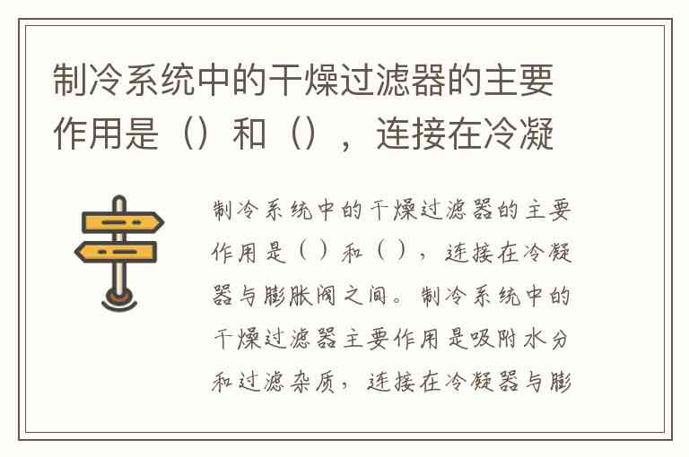 制冷系统中的干燥过滤器的主要作用是()和(),连接在冷凝器与膨胀阀之间。
