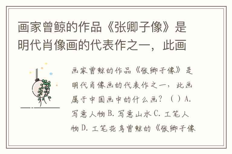 画家曾鲸的作品《张卿子像》是明代肖像画的代表作之一,此画属于中国画中的什么画?()A.写意人物 B.写意山水 C.工笔人物 D.工笔花鸟
