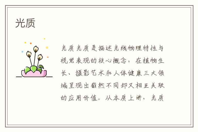光质是描述光线物理特性与视觉表现的核心概念,在植物生长、摄影艺术和人体健康三大领域呈现出截然不同却又相互关联的应用价值。从本质上讲,光质的差异源于光源的波长组成、传播方式及与被照射物体的相互作用,这些特性决定了它如何塑造植物形态、刻画视觉艺术或影响生物节律。