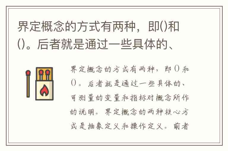 界定概念的两种核心方式是抽象定义和操作定义。前者通过揭示概念的本质属性与逻辑内涵来明确其意义,如将“植物”定义为“能进行光合作用的自养生物”;后者则聚焦可观测、可测量的具体指标,例如用“每分钟眨眼次数超过15次”来定义“视觉疲劳”。