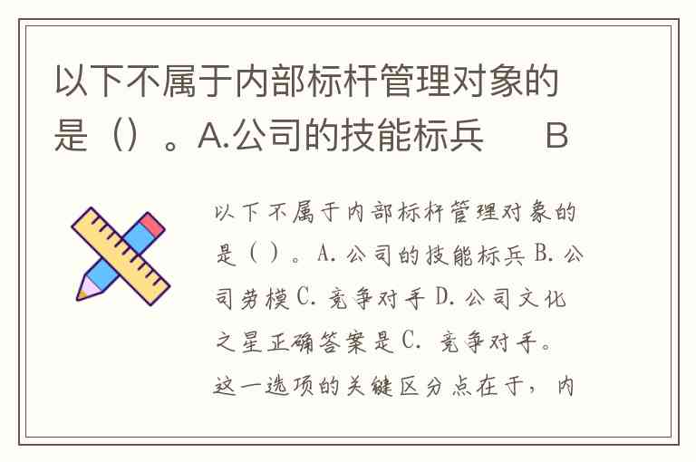 以下不属于内部标杆管理对象的是()。A.公司的技能标兵 B.公司劳模 C.竞争对手 D.公司文化之星