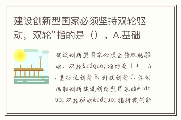 建设创新型国家必须坚持双轮驱动,双轮”指的是()。A.基础性创新 B.科技创新 C.体制机制创新