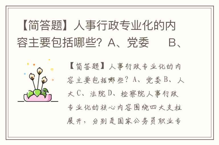 【简答题】人事行政专业化的内容主要包括哪些?A、党委 B、人大 C、法院 D、检察院