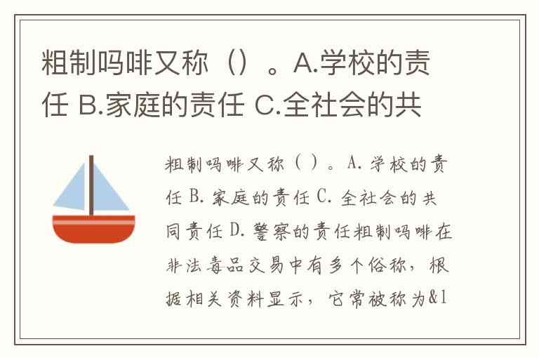 需要注意的是,题目中提供的选项(A.学校的责任;B.家庭的责任;C.全社会的共同责任;D.警察的责任)均与“粗制吗啡的别称”这一问题无关,可能存在题目与选项不匹配的情况。若问题实际是关于“禁毒工作是谁的责任”,则答案应为C.全社会的共同责任,因为毒品治理需要家庭、学校、执法部门及社会各界的协同努力。你是否需要进一步核实问题内容?