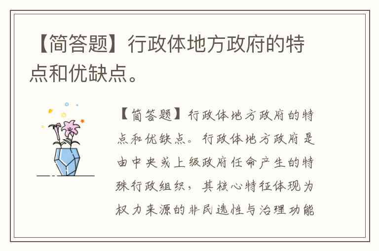 【简答题】行政体地方政府的特点和优缺点。