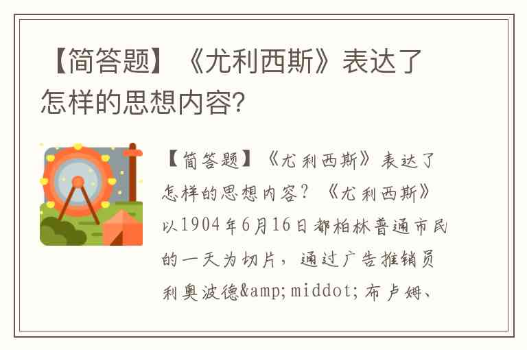 【简答题】《尤利西斯》表达了怎样的思想内容?