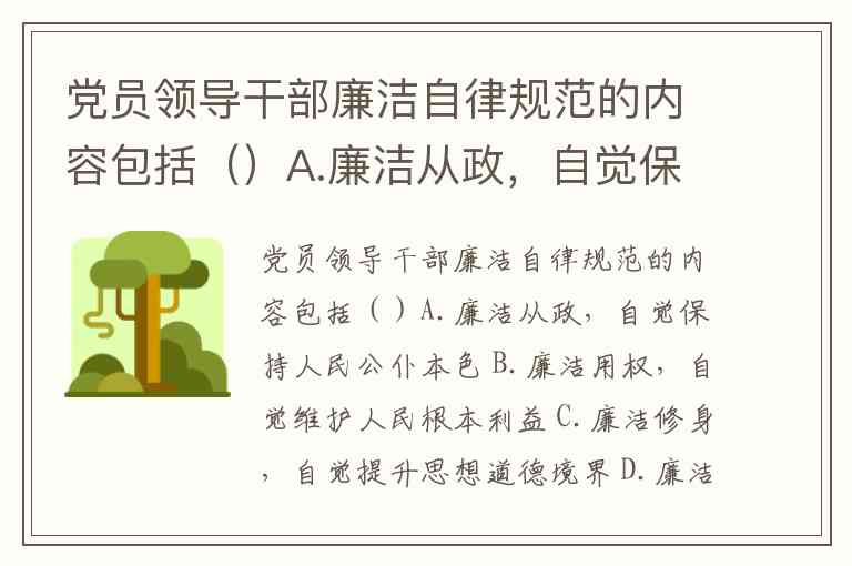 党员领导干部廉洁自律规范的内容包括()A.廉洁从政,自觉保持人民公仆本色 B.廉洁用权,自觉维护人民根本利益 C.廉洁修身,自觉提升思想道德境界 D.廉洁齐家,自觉带头树立良好家风