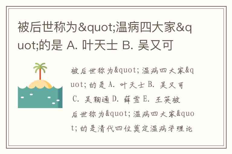 被后世称为"温病四大家"的是 A. 叶天士 B. 吴又可 C. 吴鞠通 D. 薛雪 E. 王英