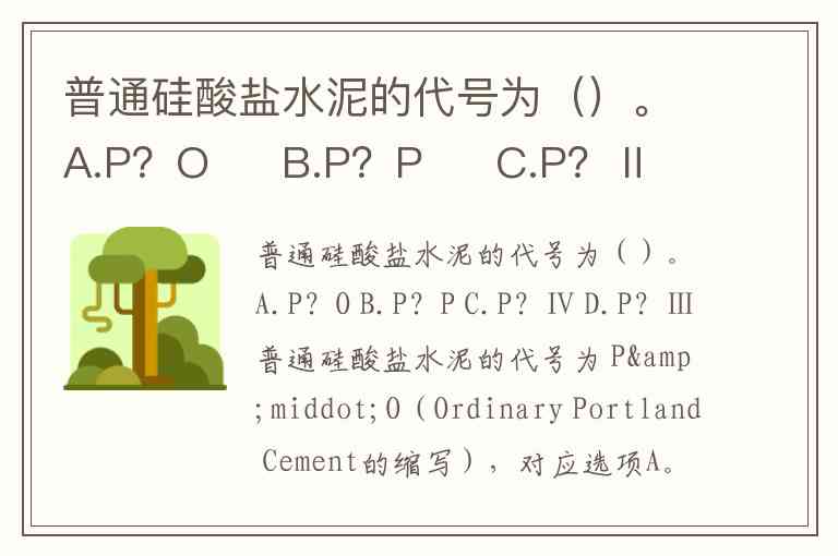 普通硅酸盐水泥的代号为()。A.P?O B.P?P C.P?Ⅱ D.P?Ⅰ