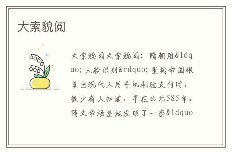 大索貌阅:隋朝用“人脸识别”重构帝国根基
