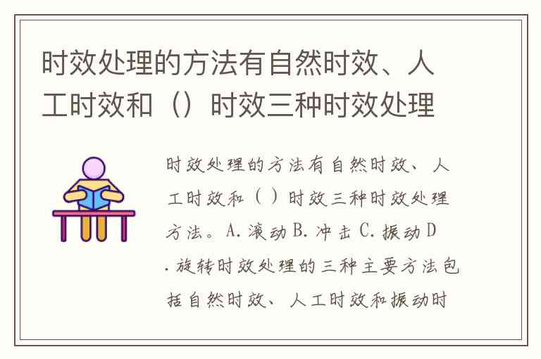 时效处理的方法有自然时效、人工时效和()时效三种时效处理方法。A.滚动 B.冲击 C.振动 D.旋转