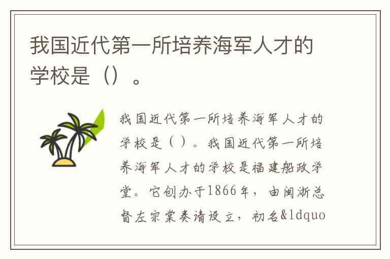 我国近代第一所培养海军人才的学校是()。