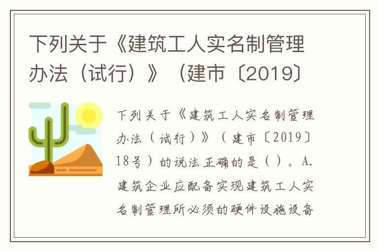 根据《建筑工人实名制管理办法(试行)》(建市〔2019〕18号)及各地实施细则,正确答案为 A。以下是具体分析:
