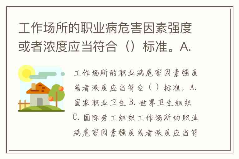 工作场所的职业病危害因素强度或者浓度应当符合()标准。A.国家职业卫生 B.世界卫生组织 C.国际劳工组织