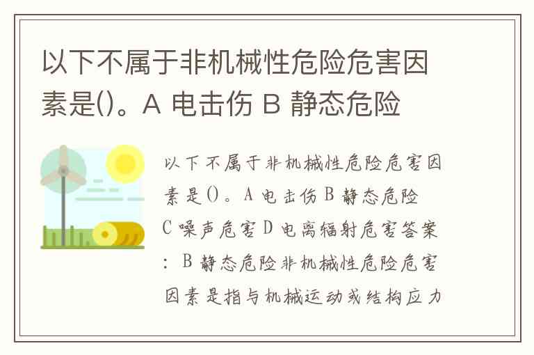 以下不属于非机械性危险危害因素是()。A 电击伤 B 静态危险 C 噪声危害 D 电离辐射危害