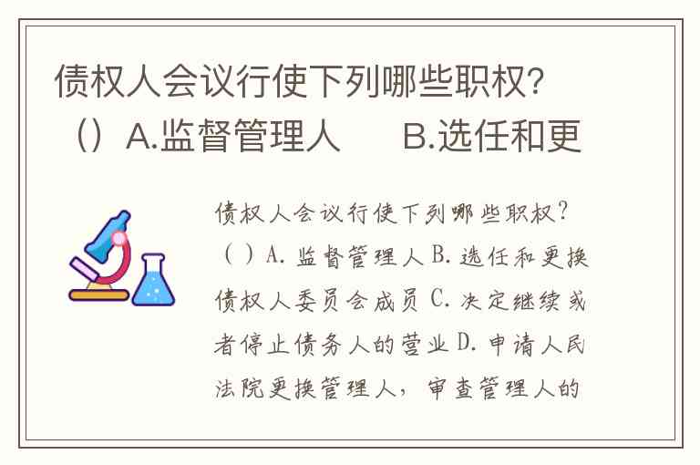 债权人会议行使下列哪些职权?()A.监督管理人 B.选任和更换债权人委员会成员 C.决定继续或者停止债务人的营业 D.申请人民法院更换管理人,审查管理人的费用和报酬