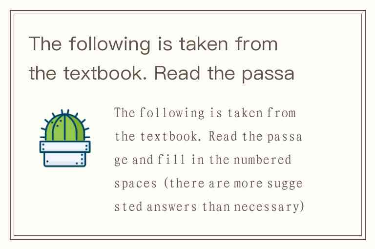 The following is taken from the textbook. Read the passage and fill in the numbered spaces (there are more suggested answers than necessary). Write your answers on the ANSWER SHEET. All of us have read thrilling stories in which the hero had only a limited and specified time to live. 1 . But always we were interested in discovering just how the doomed man chose to spend his last days or his last hours. I speak, of course, of free men who have a choice, not condemned criminals whose sphere of activities is strictly delimited Such stories set us thinking, wondering what we should do under similar circumstances. What s, what experiences, what associations should we crowd into those last hours as mortal beings 2 Sometimes I have thought it would be an excellent rule to live each day as if we should die tomorrow. Such an attitude would emphasize sharply the values of life. We should live each day with a gentleness, a vigor, and a keenness of appreciation which are often lost when time stretches before us in the constant panorama of more clays and months and years to come. 3 , but most people would be chastened by certainty of impending death. In stories, the doomed hero is usually saved at the last minute by some stroke of fortune, but almost always his sense of values is changed. 4 . It has often been noted that those who live, or have lived, in the shadow of death bring a mellow sweetness to everything they do. Most of us, however, take life for granted. We know that one day we must die, but usually we picture that day as far in the future. 5 . We seldom think of it. The days stretch out in an endless vista. So we go about our petty task, hardly aware of our listless attitude toward life. The same lethargy, I am afraid, characterizes the use of all our faculties and senses. Only the deaf appreciate hearing, only the blind realize the manifold blessings that lie in sight. Particularly does this observation apply to those who have lost sight and hearing in life. 6 . Their eyes and ears take in all sights and sounds hazily, without concentration, and with little appreciation. It is the same old story of not being grateful for what we have until we lose it, of not being conscious of health until we are ill. I have often thought it would be a blessing if each human being were stricken blind and deaf for a few days at some time during his early life. 7 . Now and then I have tested my seeing friends to discover what they see. Recently I was visited by a very good friend who had just returned from a long walk in the woods, and I asked her what she had observed. "Nothing in particular." She replied. 8 , for long ago I became convinced that the seeing see little. How was it possible, I asked myself, to walk for an hour through the woods and see nothing worthy of note 9 . I feel the delicate symmetry of a leaf. I pass my hands lovingly about the smooth skin of a silver birch, or the rough shaggy bark of a pine. In spring I touch the branches of trees hopefully in search of a bud, the first sigh of awakening Nature after her winter’s sleep. I feel the delightful, velvety texture of a flower, and discover its remarkable convolution; and something of the miracle of Nature is revealed to me. Occasionally, if I am very fortunate, I place my hand gently on a small tree and feel the happy shiver of a bird in full song. I am delighted to have the cool waters of a brook rush through my open fingers. 10 . To me the pageant of seasons is a thrilling and unending drama, the action of which streams through my fingertips. A.Sometimes it was as long as a year; sometimes as short as twenty-four hours B.This is a basic fact to keep in mind C.But those who have never suffered impairment of sight or hearing seldom make the fullest use of these blessed faculties D.He becomes more appreciative of the meaning of life and its permanent spiritual values E.Darkness would make him more appreciative of sight; silence would teach him the joys of sound F.There are those, of course, who would adopt the epicurean motto of "Eat, drink, and be merry" G.In this way, the survivors can become all-powerful H.I who cannot see find hundred of things to interest me through mere touch I.When we are in buoyant health, death is all but unimaginable J.I might have been incredulous had I not been accustomed to such responses K.To me a lush carpet of pine needles or spongy grass is more welcome than the most luxurious Persian rug L.What happiness should we find in reviewing the past, what regrets The following is taken from the textbook. Read the passage and fill in the numbered spaces (there are more suggested answers than necessary). Write your answers on the ANSWER SHEET.