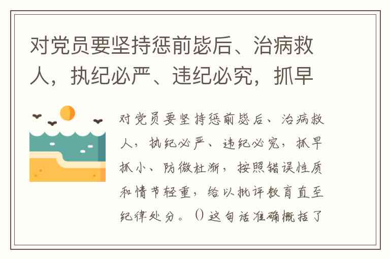 对党员要坚持惩前毖后、治病救人,执纪必严、违纪必究,抓早抓小、防微杜渐,按照错误性质和情节轻重,给以批评教育直至纪律处分。()