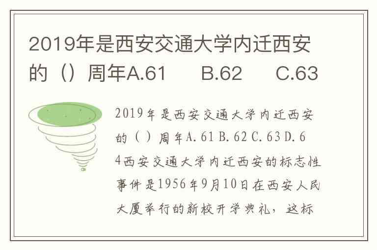 2019年是西安交通大学内迁西安的()周年A.61 B.62 C.63 D.64