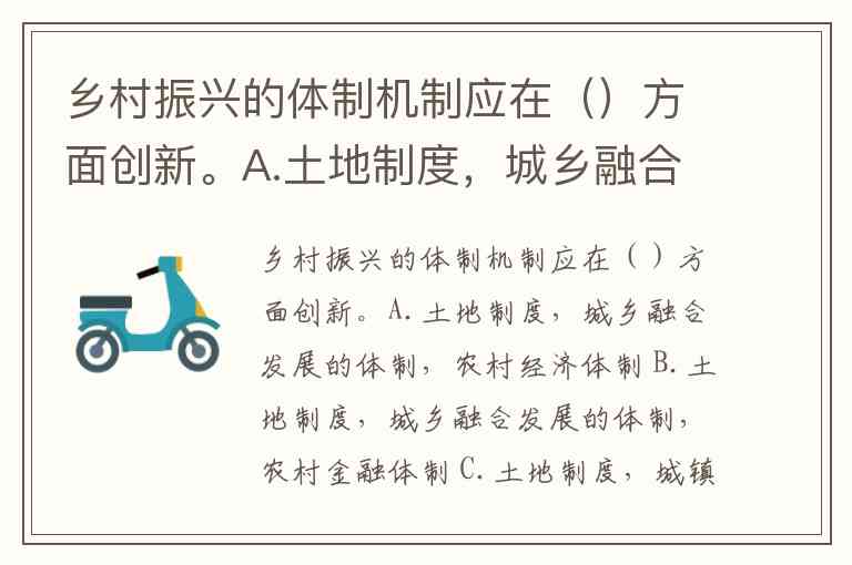 乡村振兴的体制机制应在()方面创新。A.土地制度,城乡融合发展的体制,农村经济体制 B.土地制度,城乡融合发展的体制,农村金融体制 C.土地制度,城镇融合发展的体制,农村金融体制
