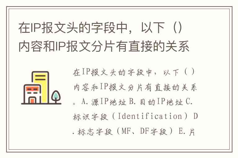 在IP报文头的字段中,以下()内容和IP报文分片有直接的关系。A.源IP地址 B.目的IP地址 C.标识字段(Identification) D.标志字段(MF、DF字段) E.片偏移