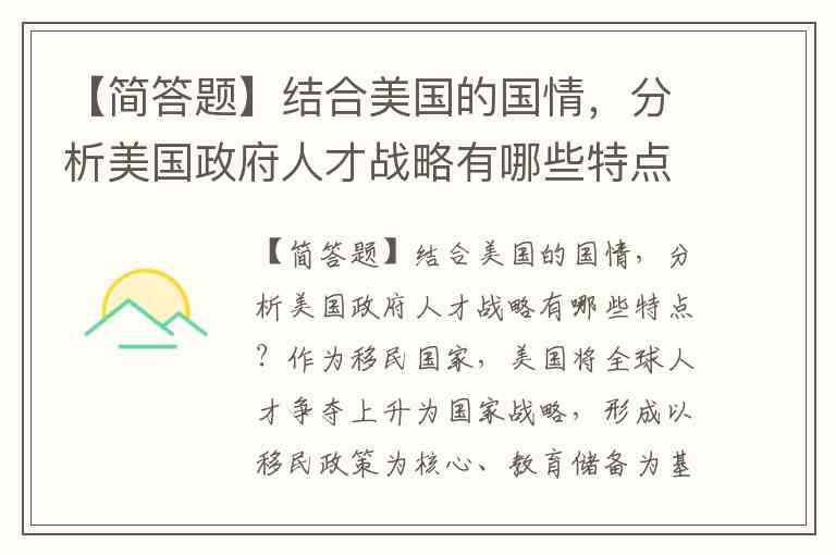 【简答题】结合美国的国情,分析美国政府人才战略有哪些特点?