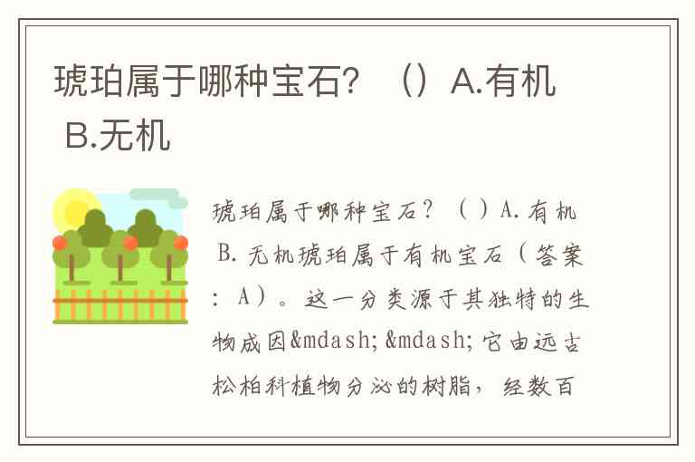 琥珀属于哪种宝石?()A.有机 B.无机