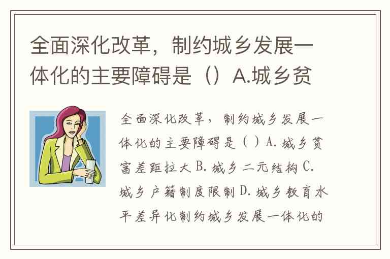 全面深化改革,制约城乡发展一体化的主要障碍是()A.城乡贫富差距拉大 B.城乡二元结构 C.城乡户籍制度限制 D.城乡教育水平差异化