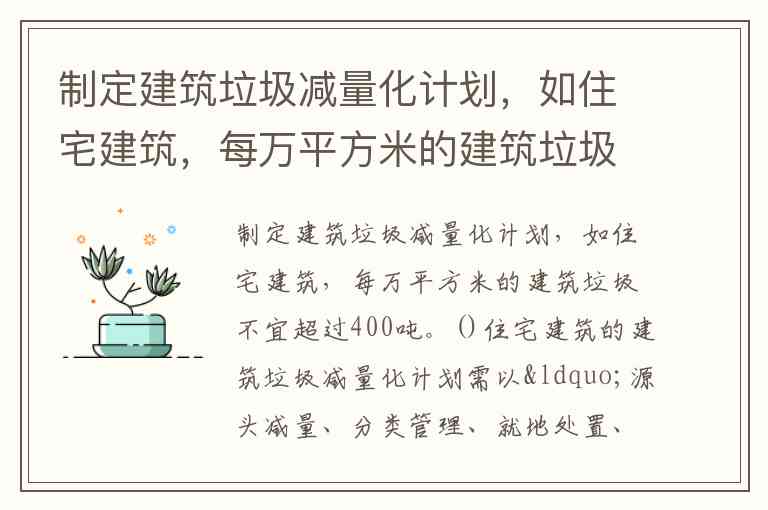 制定建筑垃圾减量化计划,如住宅建筑,每万平方米的建筑垃圾不宜超过400吨。()