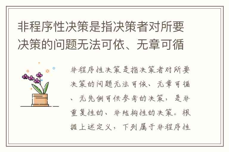 非程序性决策的核心特征是无法可依、无章可循、无先例可供参考,且具有非重复性、非结构性。我们需依据这一标准逐一分析选项: