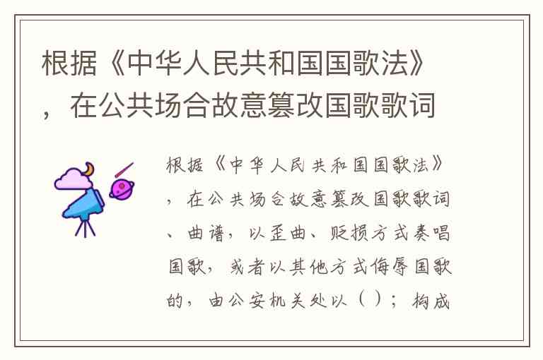 根据《中华人民共和国国歌法》,在公共场合故意篡改国歌歌词、曲谱,以歪曲、贬损方式奏唱国歌,或者以其他方式侮辱国歌的,由公安机关处以();构成犯罪的,依法追究刑事责任。A.罚款 B.警告或者十五日以下拘留 C.责令停产停业 D.警告并罚款