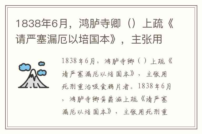 1838年6月,鸿胪寺卿()上疏《请严塞漏厄以培国本》,主张用死刑重治吸食鸦片者。