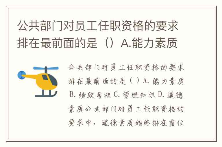 公共部门对员工任职资格的要求排在最前面的是()A.能力素质 B.绩效考核 C.管理知识 D.道德素质
