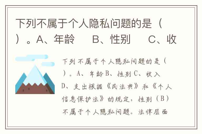 下列不属于个人隐私问题的是()。A、年龄 B、性别 C、收入 D、支出