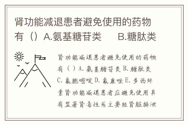 肾功能减退患者避免使用的药物有()A.氨基糖苷类 B.糖肽类 C.氟胞嘧啶 D.氟康唑 E.多西环素
