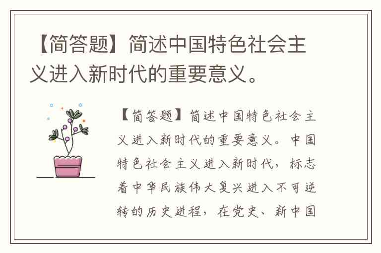【简答题】简述中国特色社会主义进入新时代的重要意义。