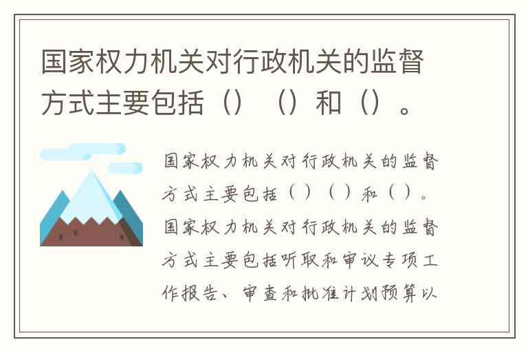 国家权力机关对行政机关的监督方式主要包括()()和()。