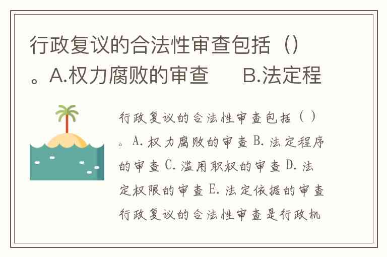 行政复议的合法性审查包括()。A.权力腐败的审查 B.法定程序的审查 C.滥用职权的审查 D.法定权限的审查 E.法定依据的审查