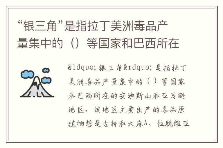 “银三角”作为世界三大毒品来源地之一,其核心组成国家在多数权威资料中被明确记载为哥伦比亚、秘鲁、玻利维亚。这一结论可从多个信源交叉验证:例如,