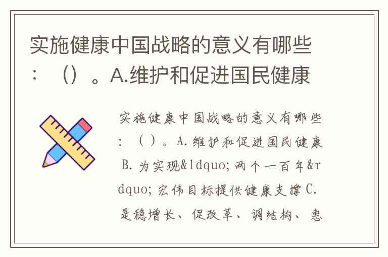 实施健康中国战略的意义有哪些:()。A.维护和促进国民健康 B.为实现“两个一百年”宏伟目标提供健康支撑 C.是稳增长、促改革、调结构、惠民生的必然要求 D.促进“四个全面”战略布局落实,进一步推动深化医改