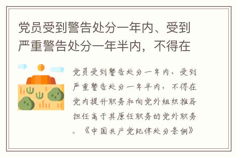 党员受到警告处分一年内、受到严重警告处分一年半内,不得在党内提升职务和向党外组织推荐担任高于其原任职务的党外职务。