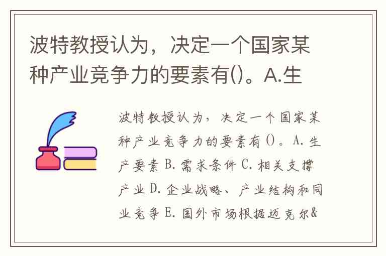 根据迈克尔·波特的“钻石模型”,决定一个国家某种产业竞争力的核心要素包括生产要素、需求条件、相关支撑产业,以及企业战略、产业结构和同业竞争,对应选项A、B、C、D。这四个要素相互作用形成动态体系,共同构成产业国际竞争力的基础。