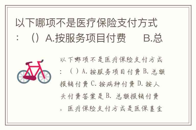 以下哪项不是医疗保险支付方式:()A.按服务项目付费 B.总额报销付费 C.按病种付费 D.按人头付费