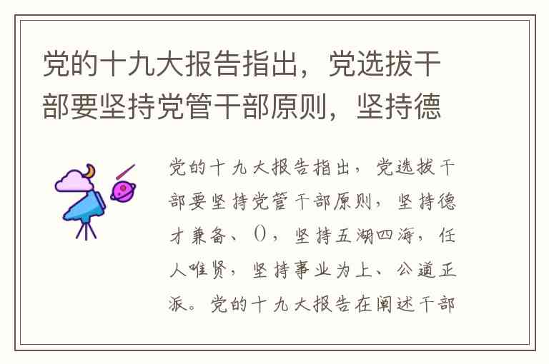 党的十九大报告在阐述干部选拔原则时,明确提出要"坚持德才兼备、以德为先"。这一表述将"德"置于干部能力评价体系的优先位置,体现了中国共产党对干部政治品格和道德修养的高度重视。