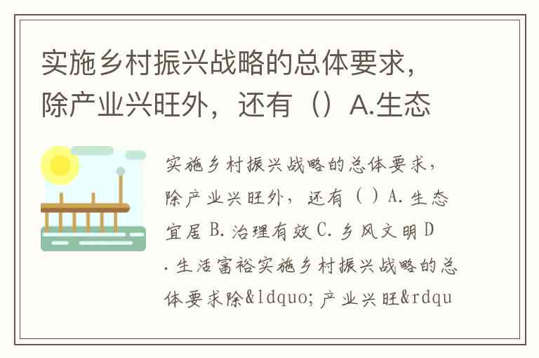 实施乡村振兴战略的总体要求,除产业兴旺外,还有()A.生态宜居 B.治理有效 C.乡风文明 D.生活富裕