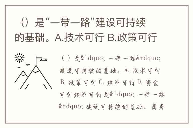 ()是“一带一路”建设可持续的基础。A.技术可行 B.政策可行 C.经济可行 D.资金可行