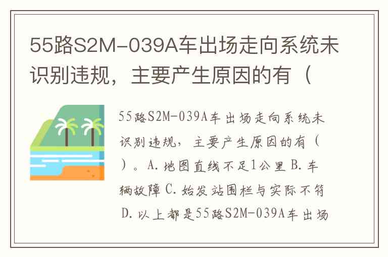 55路S2M-039A车出场走向系统未识别违规,主要产生原因的有()。A.地图直线不足1公里 B.车辆故障 C.始发站围栏与实际不符 D.以上都是