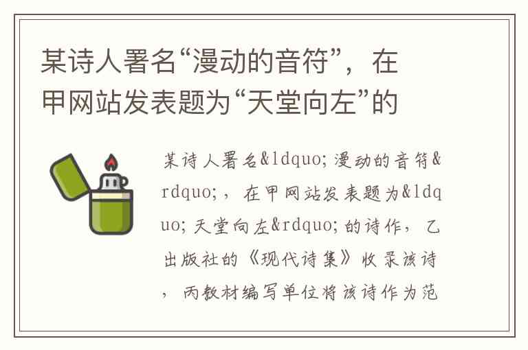 某诗人署名“漫动的音符”,在甲网站发表题为“天堂向左”的诗作,乙出版社的《现代诗集》收录该诗,丙教材编写单位将该诗作为范文编入《语文》教材,丁文学网站转载了该诗。下列哪一说法是正确的? A.该诗人在甲网站署名方式不合法 B.“天堂向左”在《现代诗集》中被正式发表 C.丙可以不经该诗人同意使用“天堂向左”,但应当按照规定支付报酬 D.丁网站未经该诗人和甲网站同意而转载,构成侵权行为 【此题估分】:0 分 【参考解析】:暂无