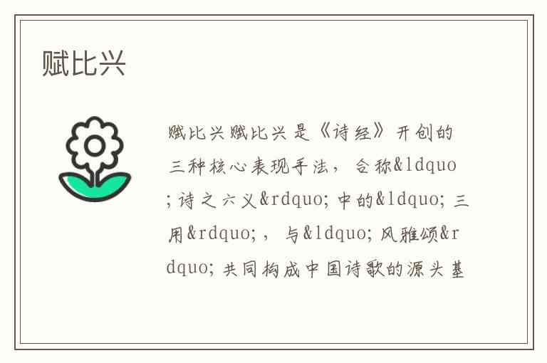 赋比兴是《诗经》开创的三种核心表现手法,合称“诗之六义”中的“三用”,与“风雅颂”共同构成中国诗歌的源头基因。这三种手法并非孤立存在,而是通过“直叙-比喻-联想”的逻辑链条,构建起古代诗歌“物-情-理”的表达体系。