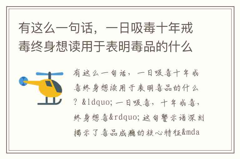 有这么一句话,一日吸毒十年戒毒终身想读用于表明毒品的什么?